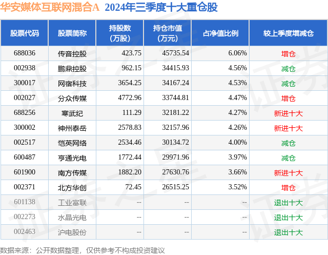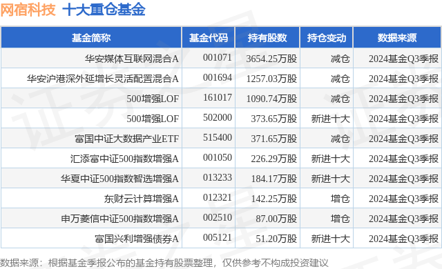 笔据2024基金Q3季报公募基金重仓股数据,重仓该股的公募基金共20家,其中握罕有量最多的公募基金为华安媒体互联网羼杂A。华安媒体互联网羼杂A当今规模为53.86亿元,最新净值2.975(1月9日),较上一来去日高潮0.03%,近一年高潮19.48%。该公募基金现任基金司理为胡宜斌。胡宜斌在职的基金家具包括:华安智能生存羼杂A,贬责时间为2019年5月8日于今,本领收益率为108.46%;华安成长翻新羼杂A,贬责时间为2019年6月27日于今,本领收益率为89.89%;华安沪港深外延增长活泼树立羼杂A,贬责时间为2022年1月26日于今,本领收益率为-18.8%。