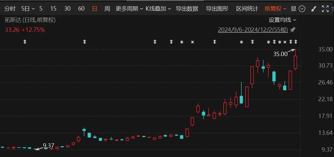 凭证公告,拓斯达公司股票于11月29日、12月2日联贯二个往未来收盘价钱涨幅偏离值累计达到30%以上,凭证关联律例,属于股票来往很是波动的情况。公司于2024年10月25日线路了《2024年第三季度论说》,2024年前三季度,公司已毕买卖收入22.35亿元,较前年同时下降30.96%;包摄于上市公司股东的净利润902.37万元,同比下降92.99%。