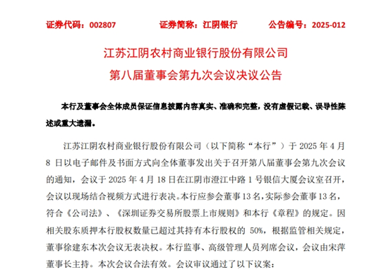 同日,江阴银行发布2025年一季度讲授,该行一季度末端营业收入11.27亿元、包摄于母公司鼓励的净利润3.57亿元,分歧同比增长6%、2.22%。财富限制安靖膨大,限制本年一季度末,该行财富限制为2070.58亿,相较于年头增长了3.41%;不良贷款率0.86%,与年头合手平。