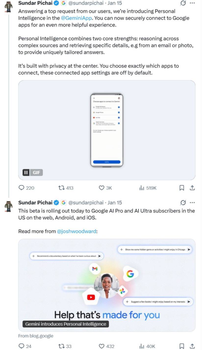Personal Intelligence功能的推出,让这些数据初次被深度整合到AI体验中。