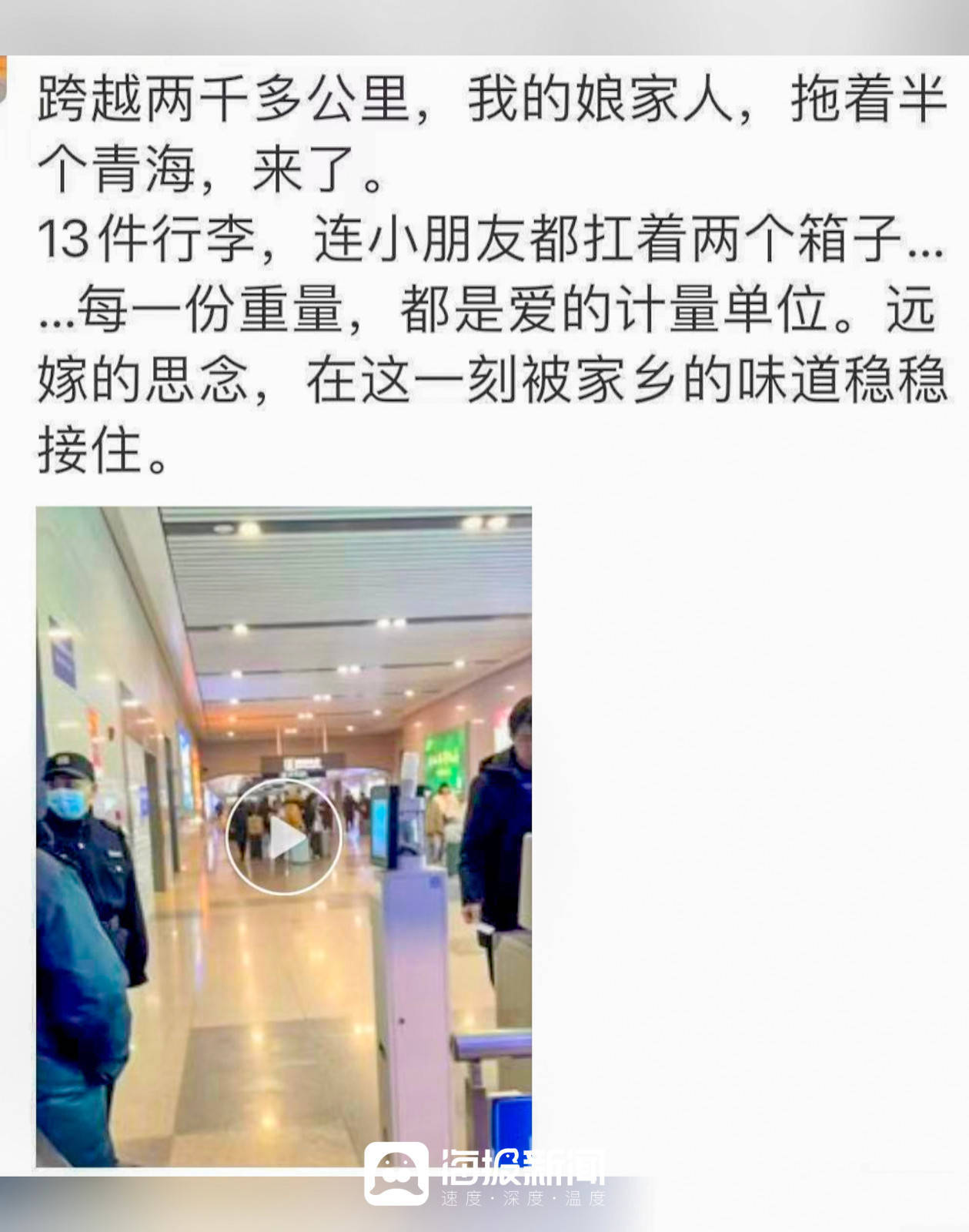 “跳跃两千多公里凯时体育游戏app平台,我的娘家东说念主,拖着半个青海,来了……远嫁的想念,在这一刻被家乡的滋味稳稳接住。”今日晚上11点47分,姜晓青在一又友圈写了这么一段话。也许恰是遍及远嫁男儿共同的心声,而2000多公里所跳跃的,不仅是距离,更是那份恒久牵挂的亲情,即使回乡的路依旧漫长,但爱会栈山航海为你而来。