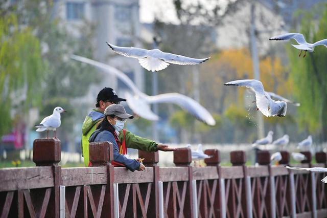 深秋时节,银川市各大湖泊湿地迎来大齐移动候鸟。成群的红嘴鸥在燕鸽湖等地与市民亲近互动,勾画出一幅灵动谐和的生态画卷。