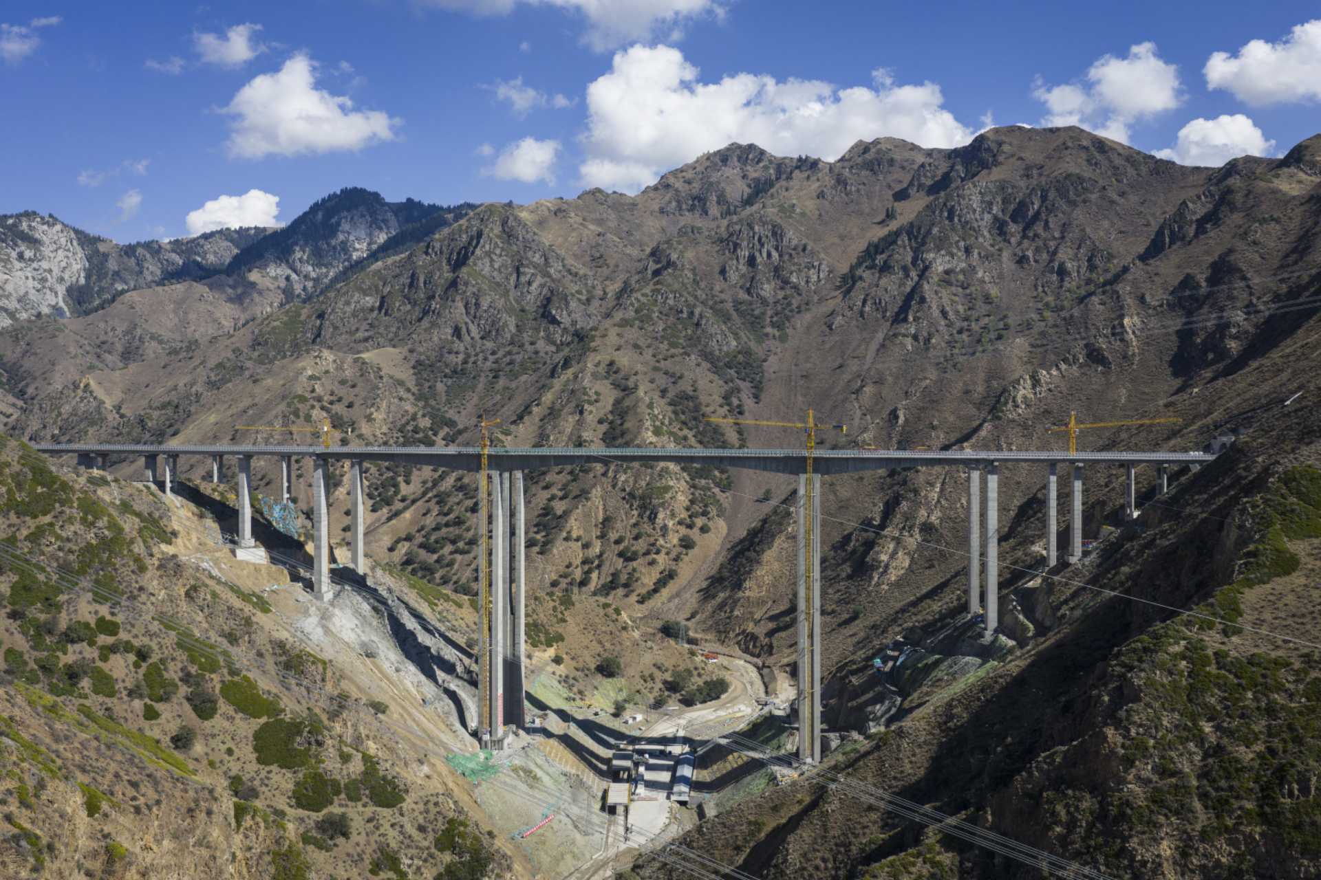 离开纯正向南,视线豁然生动。伊犁河谷本土沟壑纵横,一座巍峨的大桥横跨两岸——这是全长938米的博尔博松特大桥,其最高墩高达144米,创下新疆高速公路同类桥梁墩高新记载。博尔博松特大桥是精伊高速的“咽喉工程”,为了让大桥安全沉静,中铁三局的建造者将188根桩基打入山体,最深处达到42米。